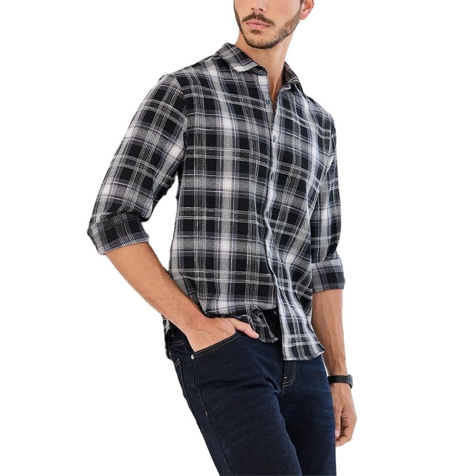เสื้อเชิ้ตผู้ชายลำลองลายสก็อต 100% ผ้าแฟลนเนล ระบายอากาศได้ดี ไซส์ใหญ่ แขนยาว สำหรับฤดูใบไม้ผลิและฤดูใบไม้ร่วง สินค้ามาใหม่จากบังกลาเทศ