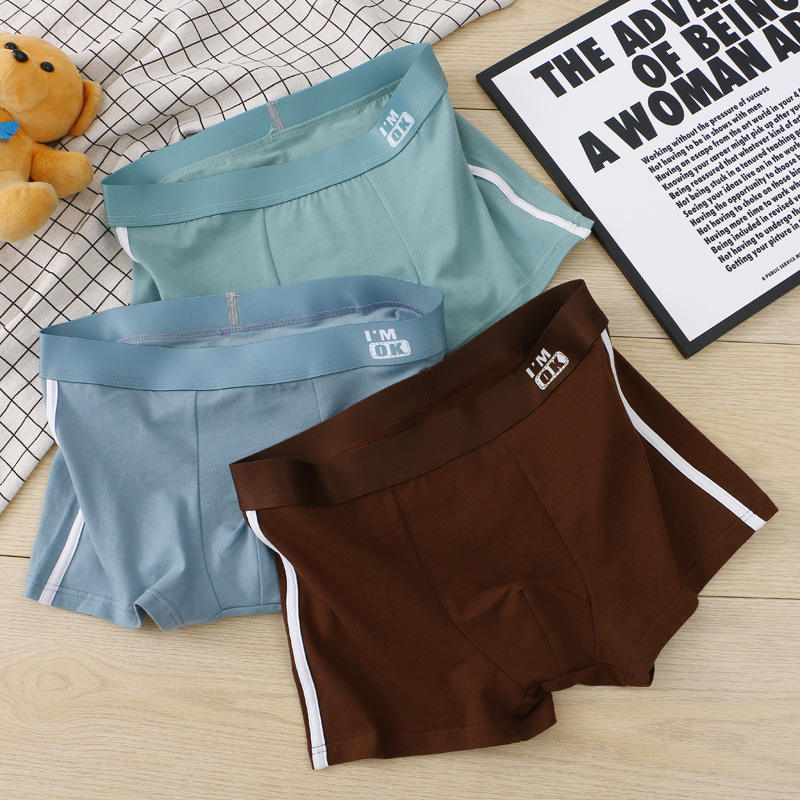 กางเกงบ็อกเซอร์ชายผ้าฝ้ายรุ่นใหม่พร้อมแถบข้างเอว