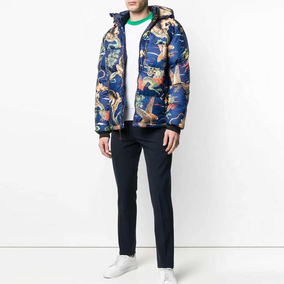 แจ็คเก็ตพัฟเฟอร์แบบซิปคอตั้งพิมพ์ลายทั้งตัวสำหรับผู้ชายรุ่นใหม่ล่าสุด แจ็คเก็ตพัฟเฟอร์บุใยสำหรับฤดูหนาวแบบติดกระดุม