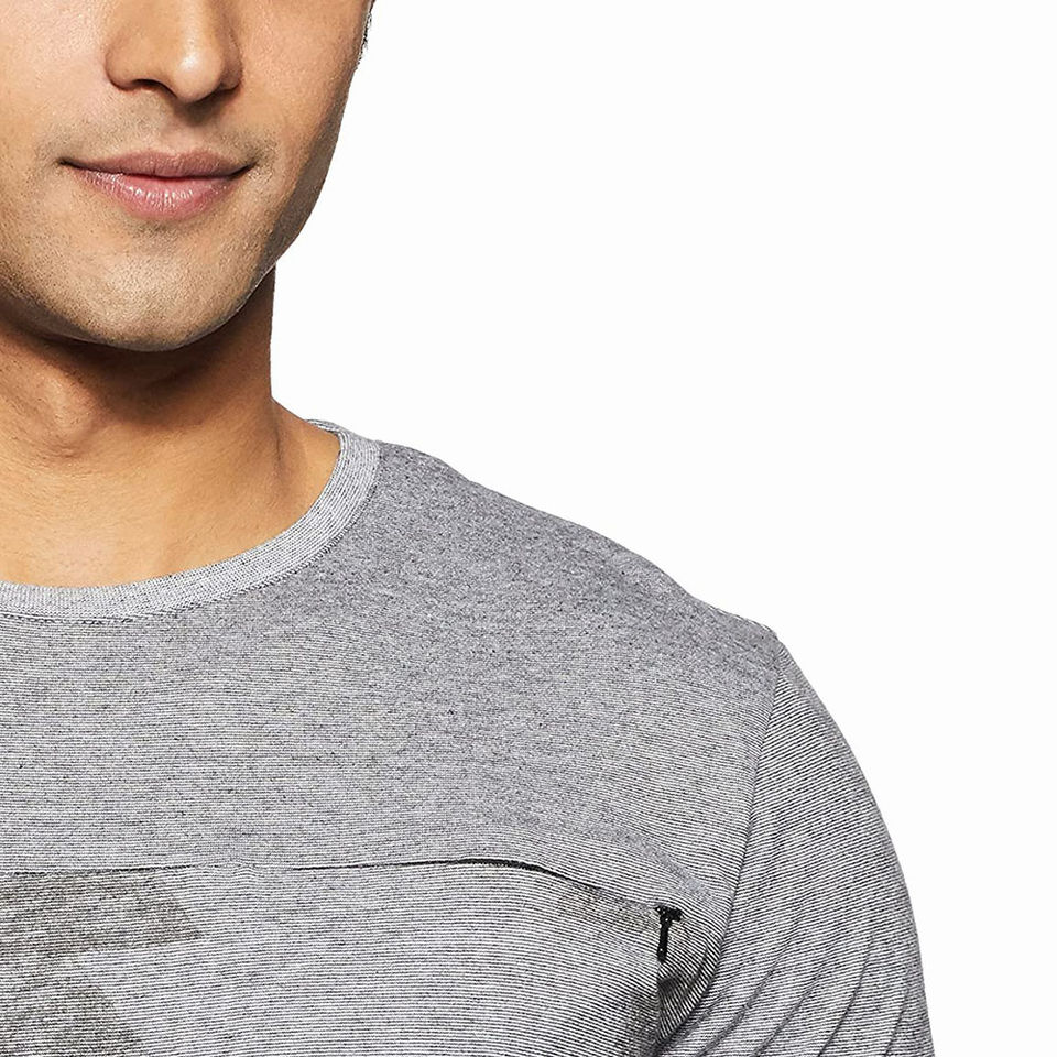 เสื้อยืดสีเทาคอกลมสำหรับผู้ชายออกแบบด้วยโลโก้ผ้าแคนวาสแบบซักได้