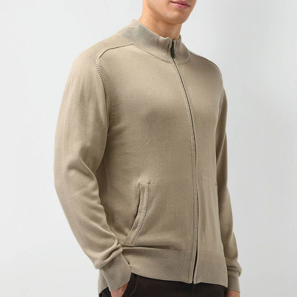เสื้อสเวตเตอร์คอตั้งแบบซิปครึ่งตัวสำหรับผู้ชายรุ่นใหม่ล่าสุด เหมาะสำหรับใส่ในชีวิตประจำวัน ผ้าถักเนื้อนุ่ม ทรงเข้ารูป สไตล์กอล์ฟ ผ้าวูลด้านหน้า
