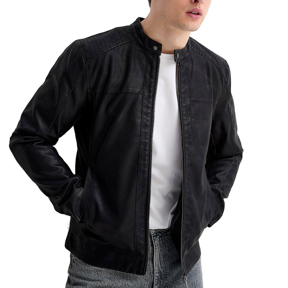 แจ็กเก็ตขี่จักรยานมีซิปสำหรับผู้ชาย100% หนัง PU ดีไซน์แฟชั่นคุณภาพสูงสินค้าใหม่