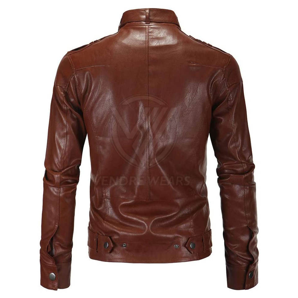 แจ็กเก็ตหนังระบายอากาศได้ดีเป็นมิตรกับสิ่งแวดล้อมสำหรับผู้ชายมาใหม่เสื้อแจ็คเก็ตฤดูหนาวมีคอตั้งโลโก้ด้านหน้าออกแบบได้ตามต้องการ
