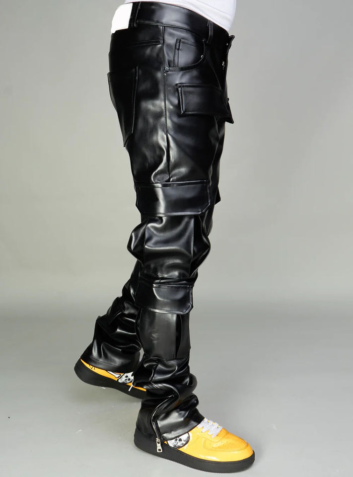 กางเกงหนังผู้ชายเอวสูงแบบมีเชือกผูก สไตล์วินเทจ ระบายอากาศได้ดี เทคโนโลยี POWER DRY รับสกรีนโลโก้ ใส่ได้ทุกฤดู