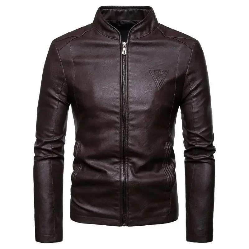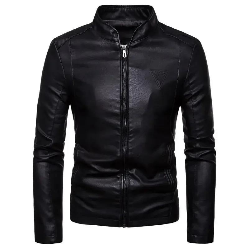เสื้อแจ็คเก็ตลำลองทรงสลิมฟิตสำหรับผู้ชาย, เสื้อโค้ทหนัง PU ขี่มอเตอร์ไซค์สีพื้นสำหรับใส่ลำลองสินค้าออกใหม่สไตล์เกาหลี