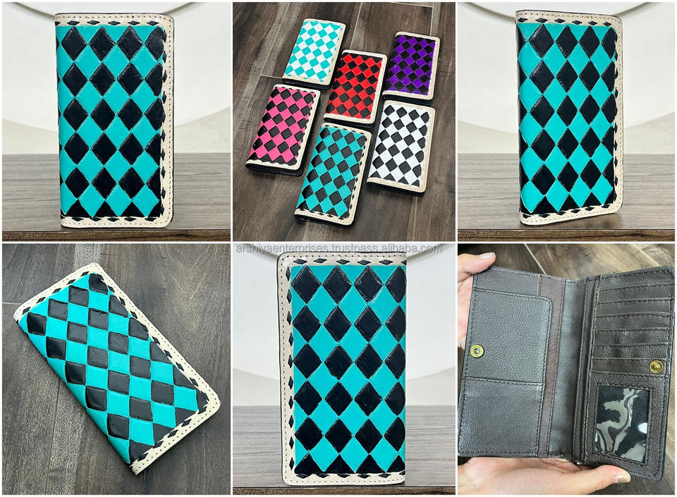 Product name:Hand Tooled Leather Checkered Long Bifold Wallets