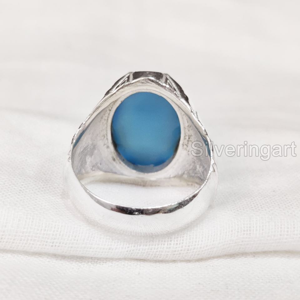 มาใหม่ผู้ชายแหวนสีฟ้าธรรมชาติพลอยพลอยแหวน Birthstone ทุกขนาดภาษาอาหรับเครื่องประดับ 925 แหวนเงิน