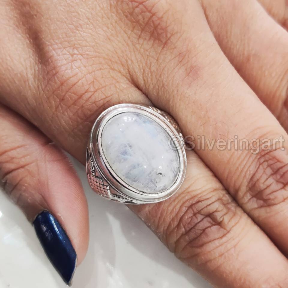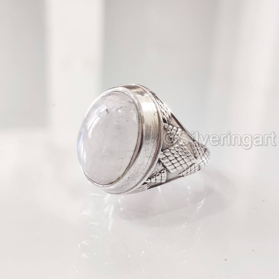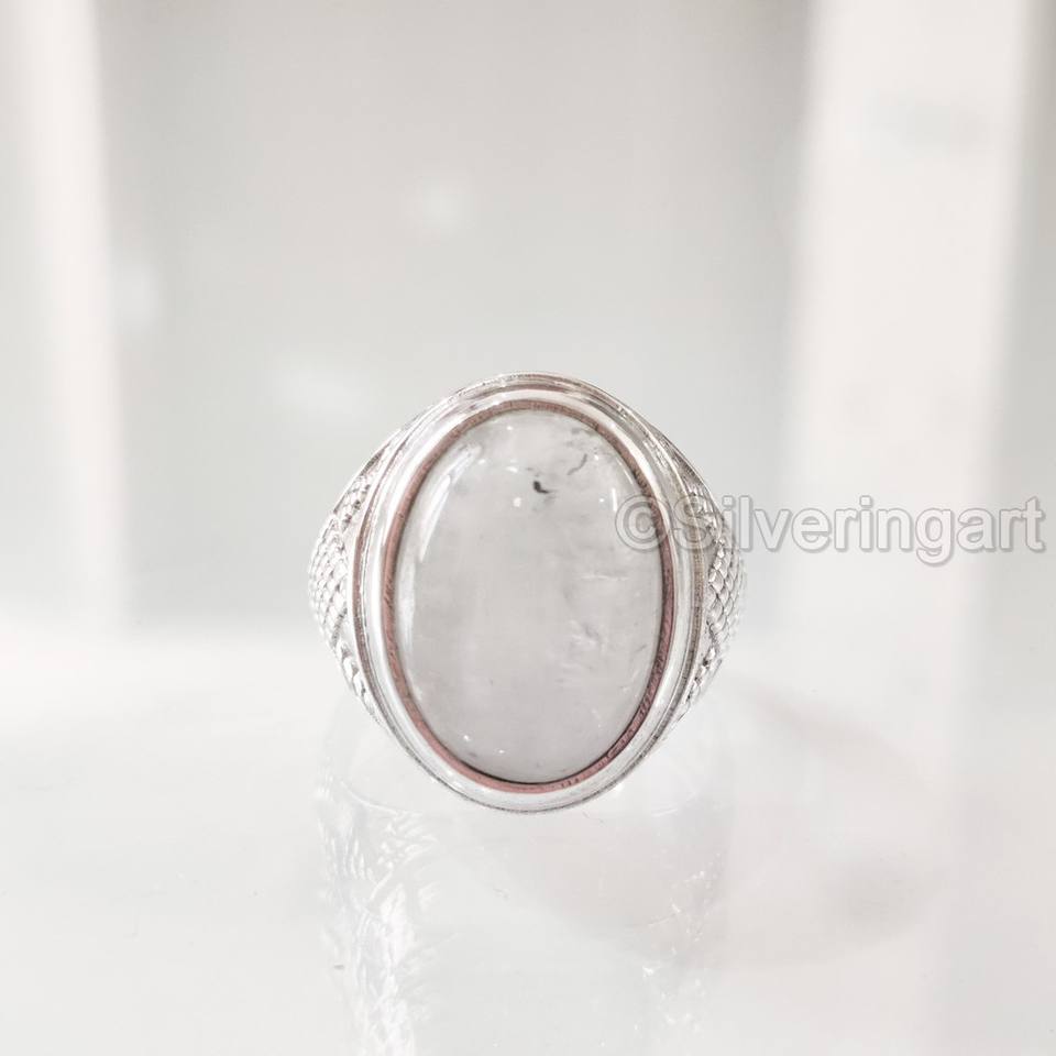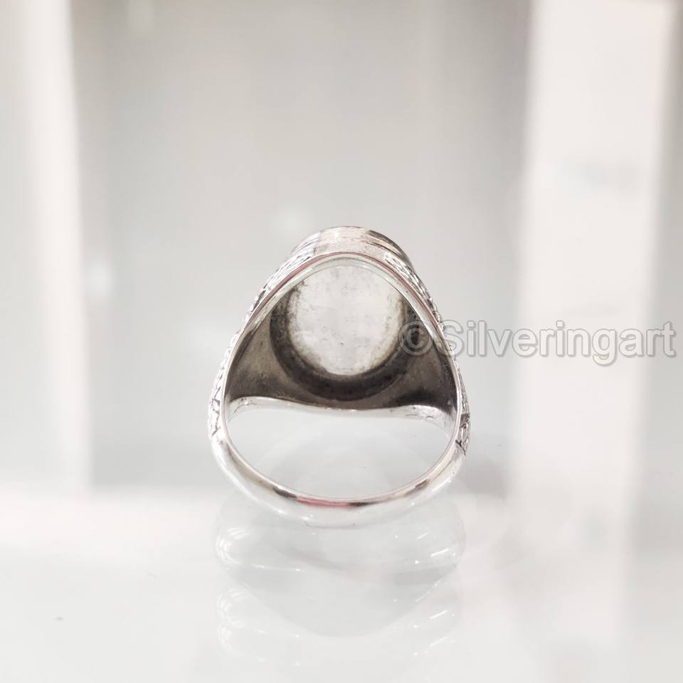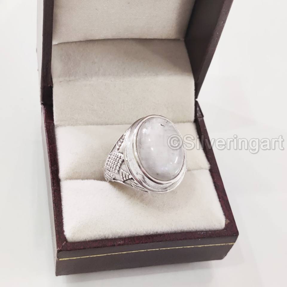 แหวนผู้ชายมาใหม่ แหวนเงินแท้ 925 ประดับพลอยมูนสโตนสีรุ้งธรรมชาติ พลอยประจำเดือนมิถุนายน เครื่องประดับสไตล์ออตโตมันสำหรับคริสต์มาส