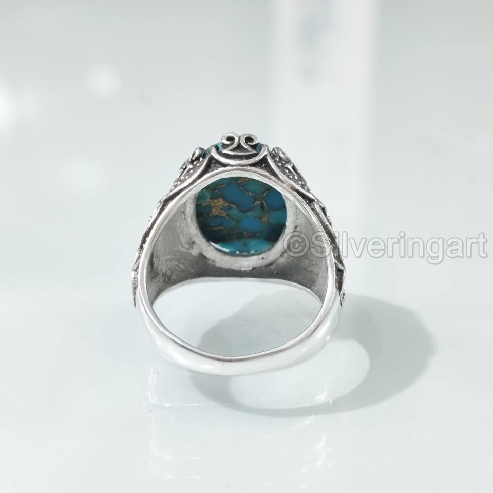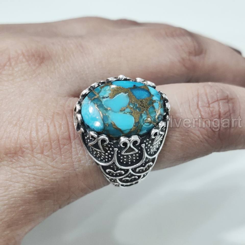 แหวนผู้ชายมาใหม่ แหวนเงินแท้ 925 ประดับพลอยเทอร์ควอยซ์สีน้ำเงินธรรมชาติ ของขวัญวันเกิด ของขวัญคริสต์มาส สไตล์ออตโตมัน