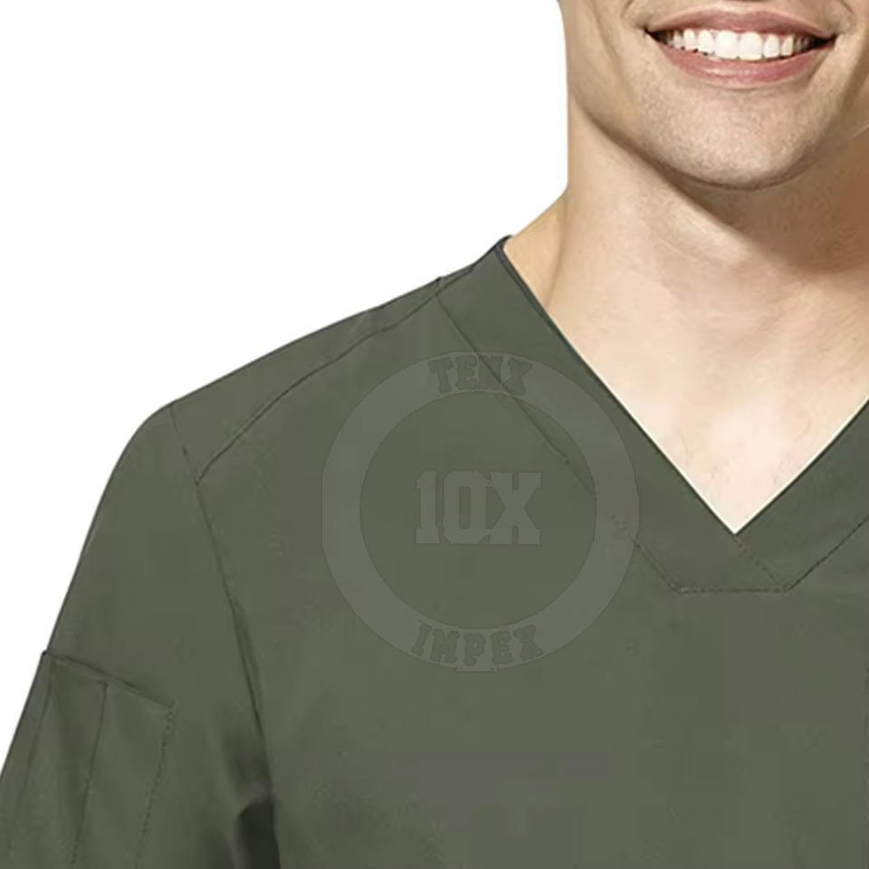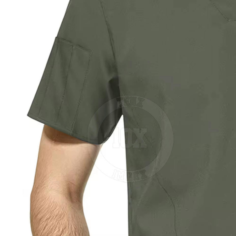 ชุดสครับโรงพยาบาลสีทึบของผู้ชายมาใหม่เครื่องแบบโรงพยาบาลน้ำหนักเบามี MOQ ต่ำสำหรับเจ้าหน้าที่ดูแลสุขภาพ
