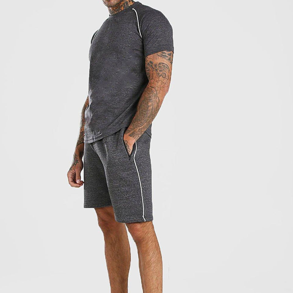 ชุดกีฬาผู้ชายเสื้อลำลองสีพื้นชุดสั้น2ชิ้นสำหรับฤดูหนาวชุดเสื้อยืดปักโลโก้ตามสั่ง