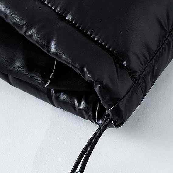 แจ็กเก็ตผ้านวมและเสื้อกันลมบุนวมหนาสีดำมีฮู้ด