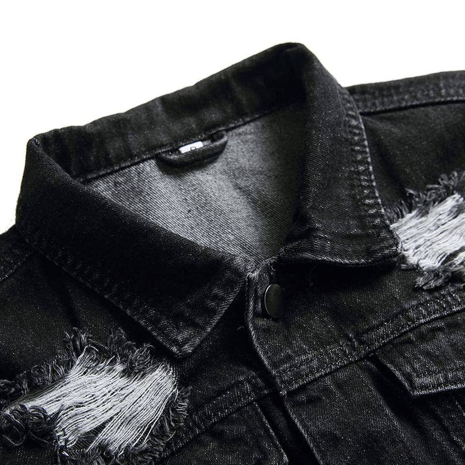 New Arrival Men's Winter Casual Denim Jacket Wholesale Price Custom Made Logo Embroidery Black Cotton Streetwear Adjustable