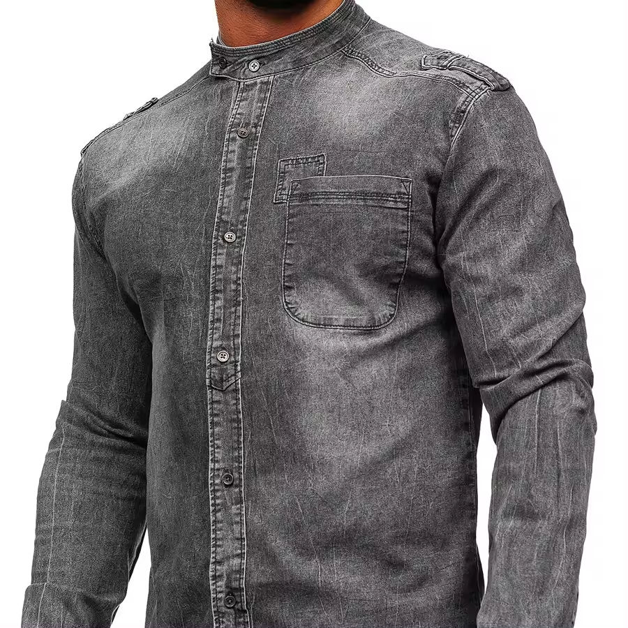 เสื้อเชิ้ตยีนส์เดนิมผู้ชายแบบสั่งตัดใหม่ล่าสุด แขนยาว แห้งเร็ว ระบายอากาศได้ดี สวมใส่สบายๆ ทำงานได้ มีลายพิมพ์เรียบหรือลายพิมพ์ต่างๆให้เลือก