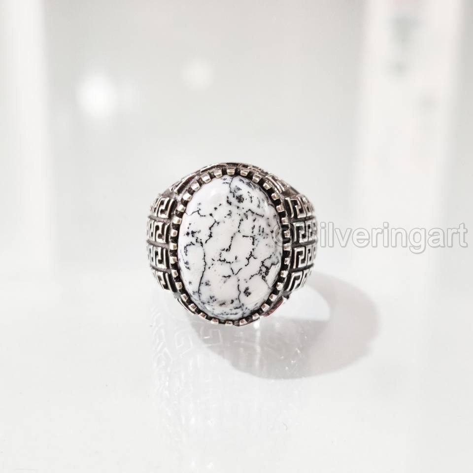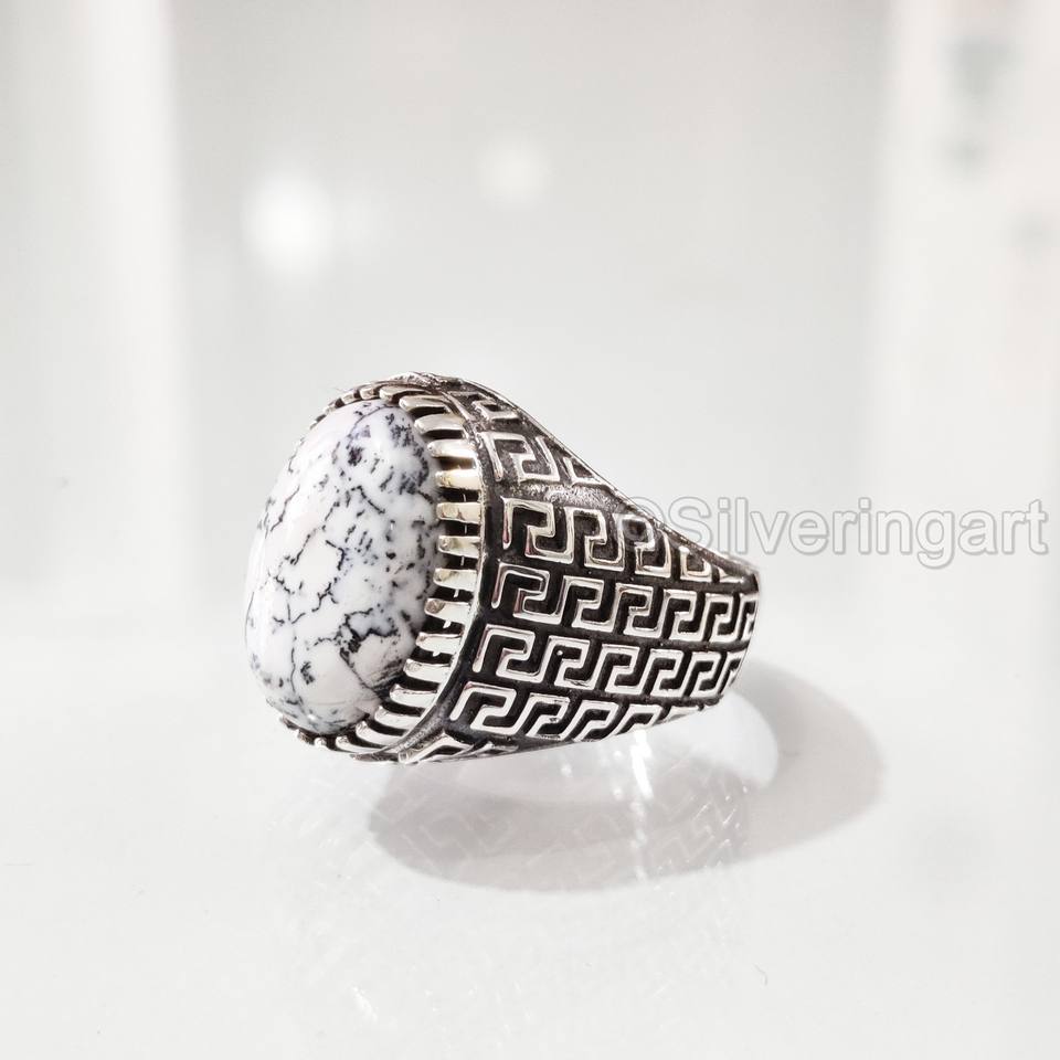 แหวนโอปอล Dendritic สำหรับผู้ชายมาใหม่แหวนพลอยโอปอล October เครื่องประดับคริสต์มาสอาหรับ925แหวนเงินสเตอริง