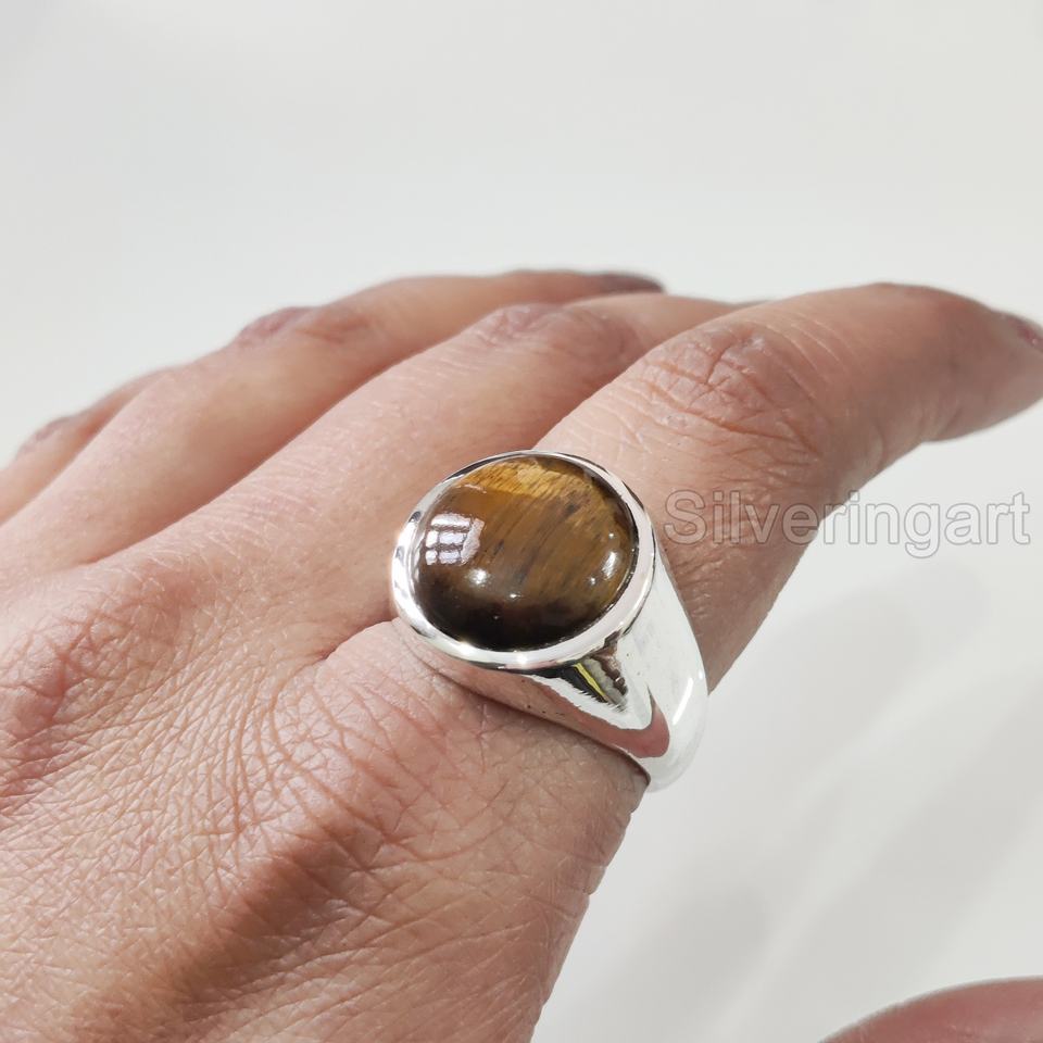 แหวนผู้ชายมาใหม่ล่าสุดแหวนพลอยตาเสือตามธรรมชาติเครื่องประดับอัญมณีทุกขนาดทำด้วยมือหนัก925แหวนเงินสเตอร์ลิง