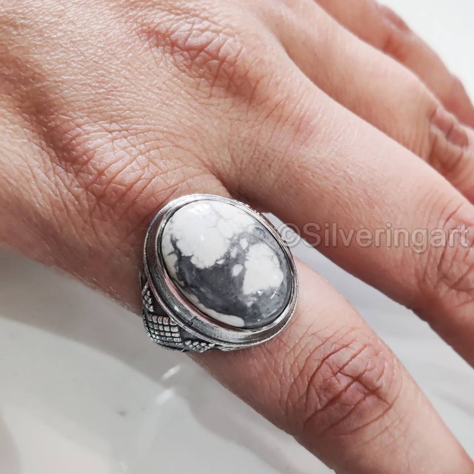 New Arrival Mens Ring Natural White Howlite Gemstone Birthstone Ring All Sizes Arabic Christmas Jewelry 925 Sterling Silver Ring