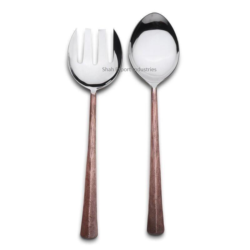 ชุดเซิฟเวอร์สลัดโลหะมาใหม่พร้อมที่จับแบบโบราณทำจากทองแดงสำหรับโต๊ะอาหารชุดช้อนและส้อม