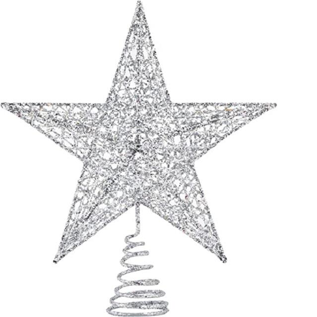 ดาวโลหะประดับยอดต้นคริสต์มาส,ยอดดาวสำหรับตกแต่งเกล็ดหิมะประดับคริสตัล
