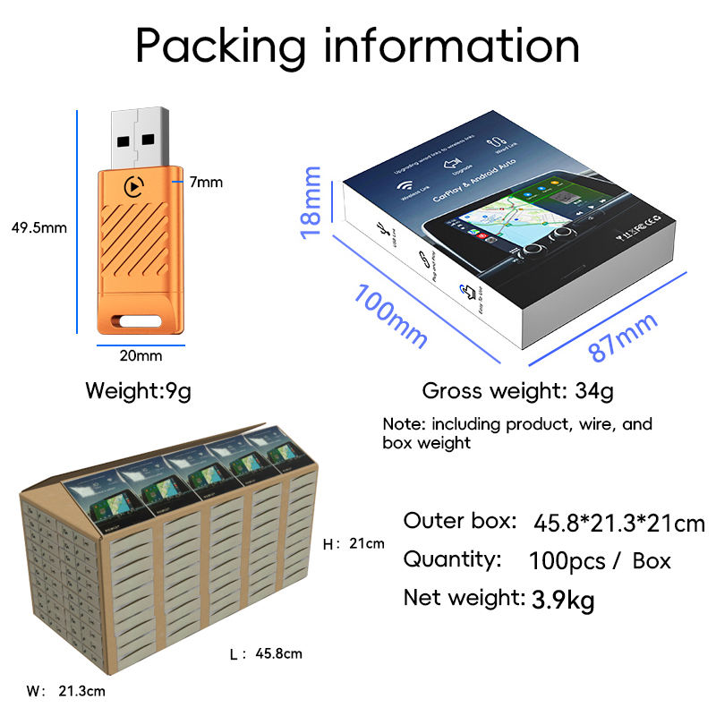 ชื่อ:อะแดปเตอร์ CarPlay ไร้สาย USB ขนาดเล็ก เชื่อมต่ออัตโนมัติอย่างรวดเร็ว