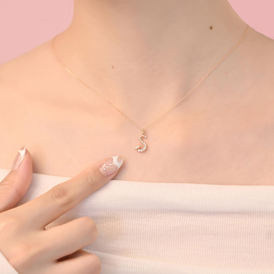 สร้อยคอจี้ตัวอักษร S ประดับเพชร ทอง 18K