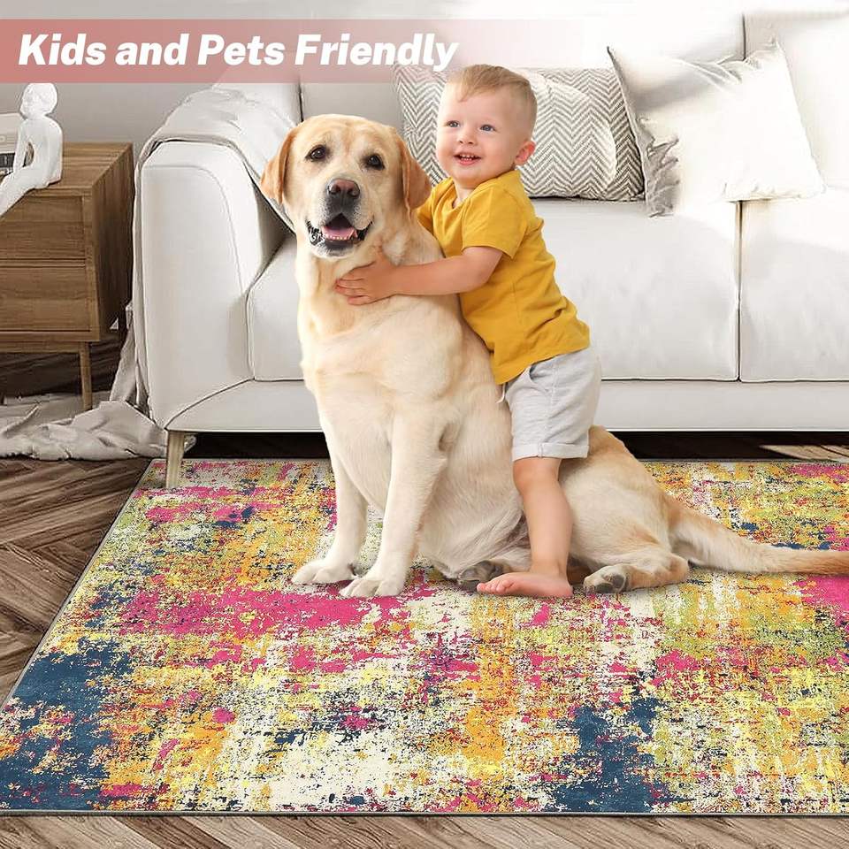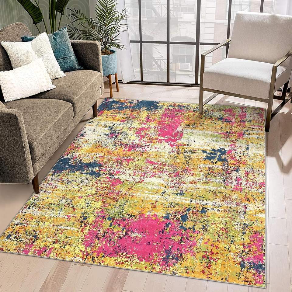 พรมสำหรับห้องนั่งเล่นขนาดใหญ่สีชมพู/เหลืองไม่ลื่นซักได้รุ่นใหม่แนวแอบสแตรก9x12สำหรับสถานรับเลี้ยงเด็กในบ้านสำนักงาน