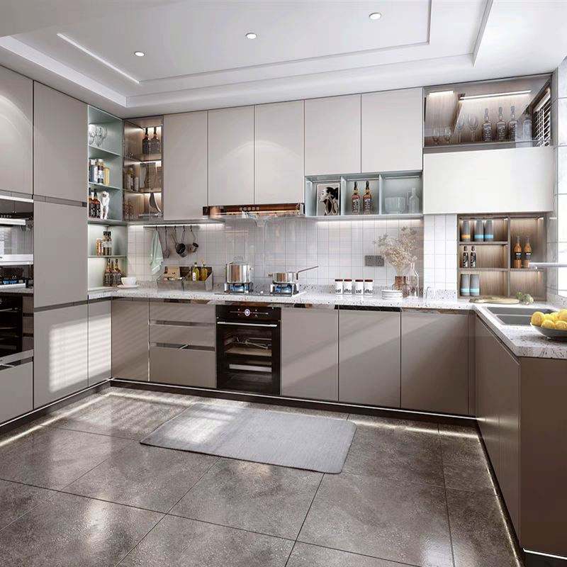 ตู้ไม้เนื้อแข็งทรงสูงเฟอร์นิเจอร์ห้องนั่งเล่นตู้ครัวดีไซน์ทันสมัย