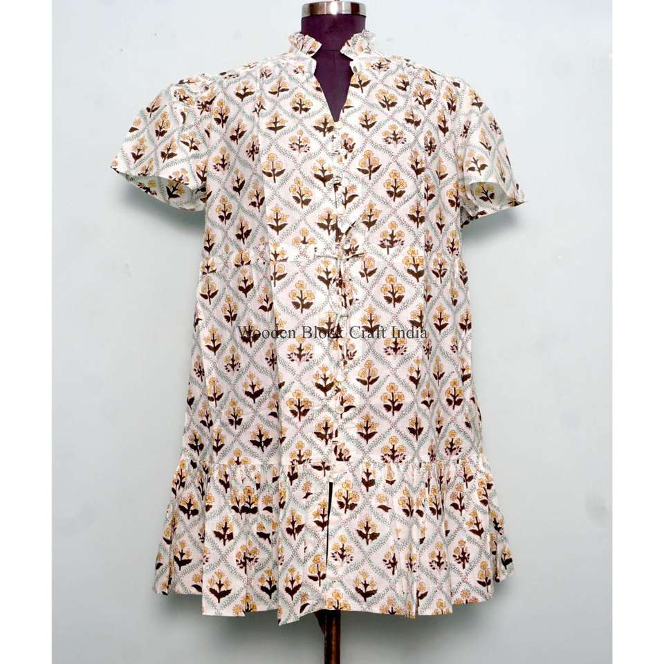 เดรสสั้นทรงเอพิมพ์ลายดอกไม้สไตล์อินเดียโบโฮทันสมัย ผ้าฝ้ายถัก คอวี แขนสั้น ติดกระดุม เหมาะสำหรับงานปาร์ตี้ ชุดมินิเดรสสำหรับผู้หญิง ใส่ได้ในช่วงฤดูร้อนและไปเที่ยวชายหาด