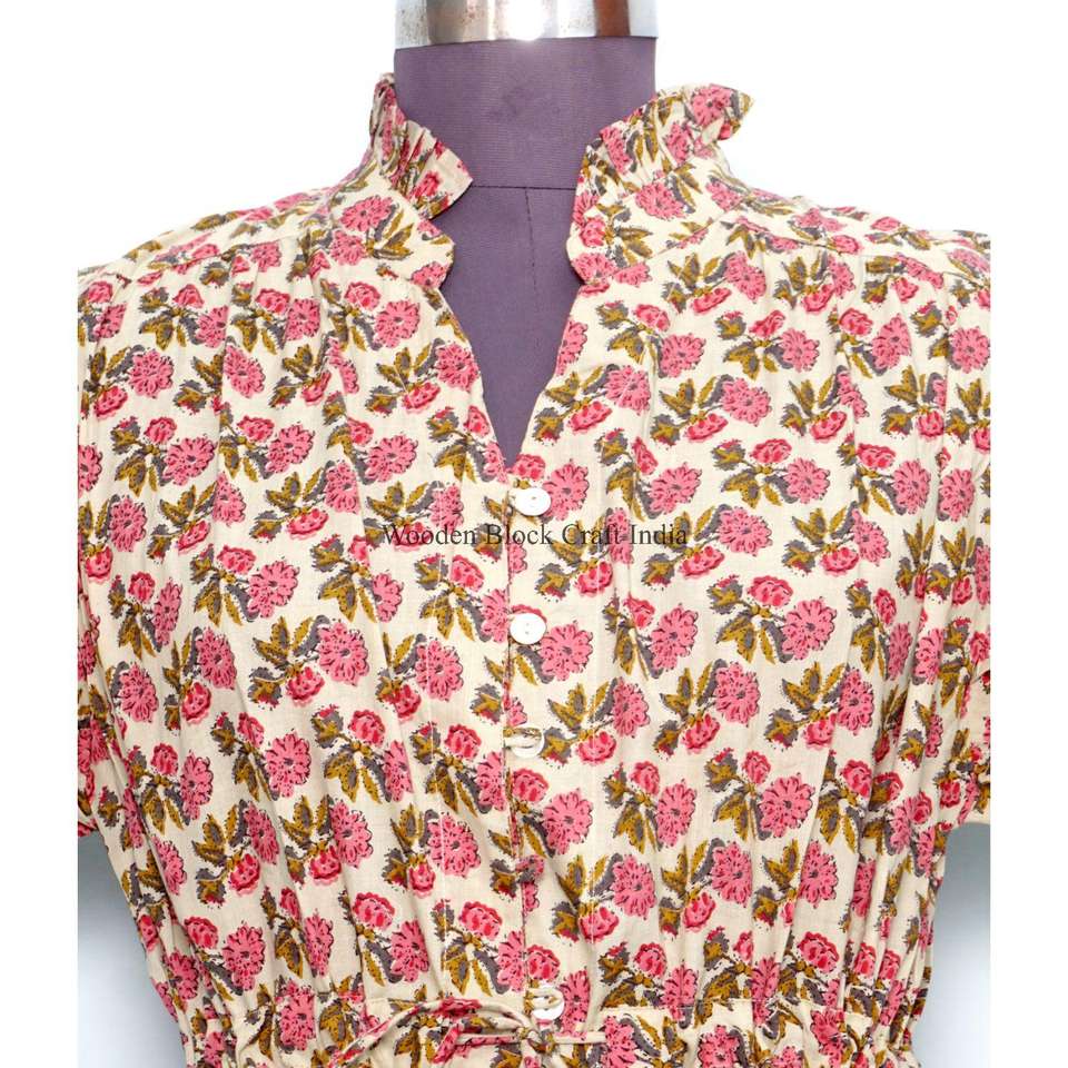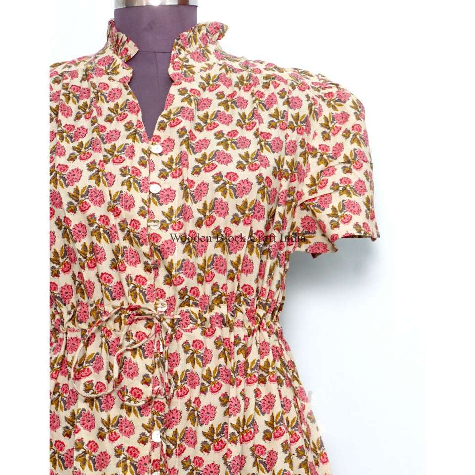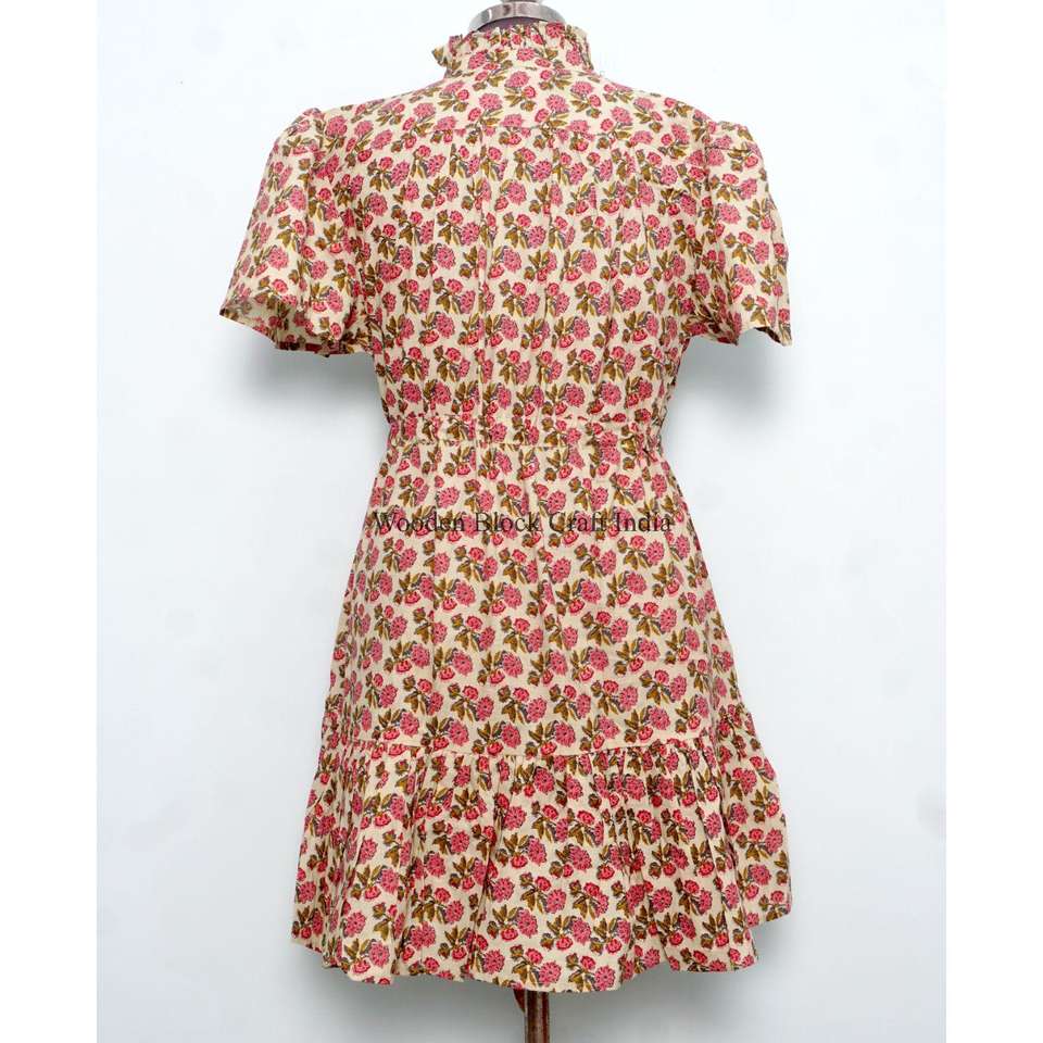 เดรสสั้นทรงเอพิมพ์ลายดอกไม้สไตล์อินเดียโบโฮทันสมัย ผ้าฝ้ายถัก คอวี แขนสั้น ติดกระดุม เหมาะสำหรับงานปาร์ตี้ ชุดมินิเดรสสำหรับผู้หญิง ใส่ได้ในช่วงฤดูร้อนและไปเที่ยวชายหาด