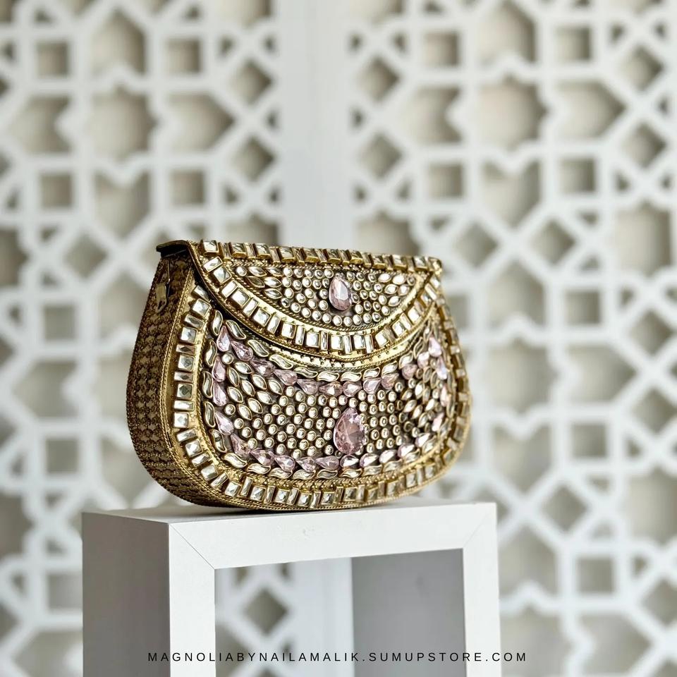 กระเป๋าคลัทช์โลหะสีเงินลายโมเสคแบบใหม่ ดีไซน์สร้างสรรค์สำหรับผู้หญิง ประดับมุกชุบทองหรูหรา เหมาะสำหรับงานแต่งงาน