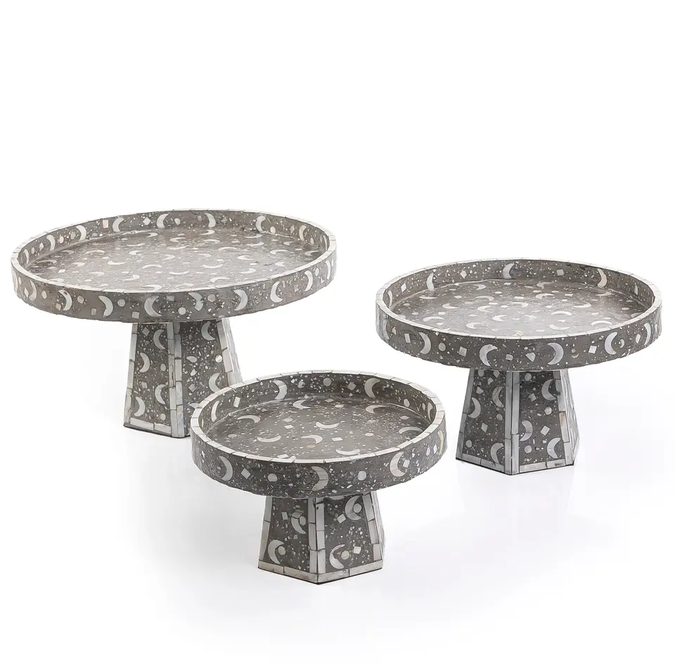 มาใหม่ชุดแม่มุกประกอบด้วยถาดเค้กยืนจานรองแก้วแม่มุกเสิร์ฟถาดร้านช็อคโกแลตอาหรับ