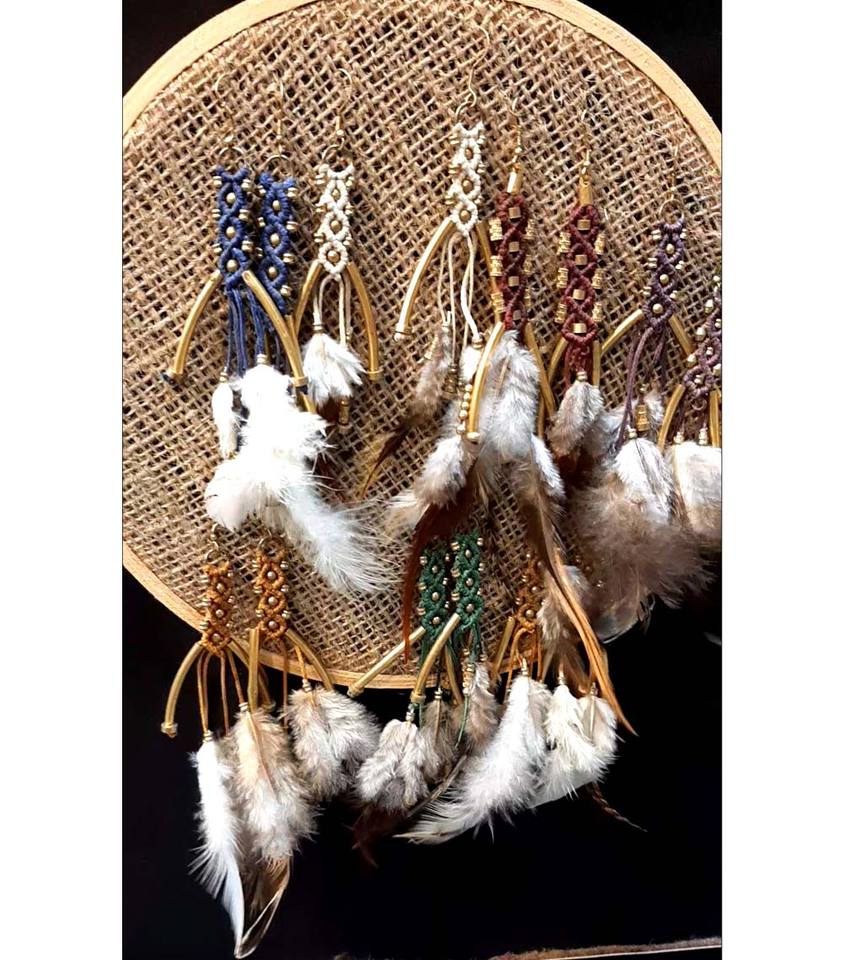 ชื่อผลิตภัณฑ์:ดีไซน์ต่างหูขนนกงานเมคราเม่