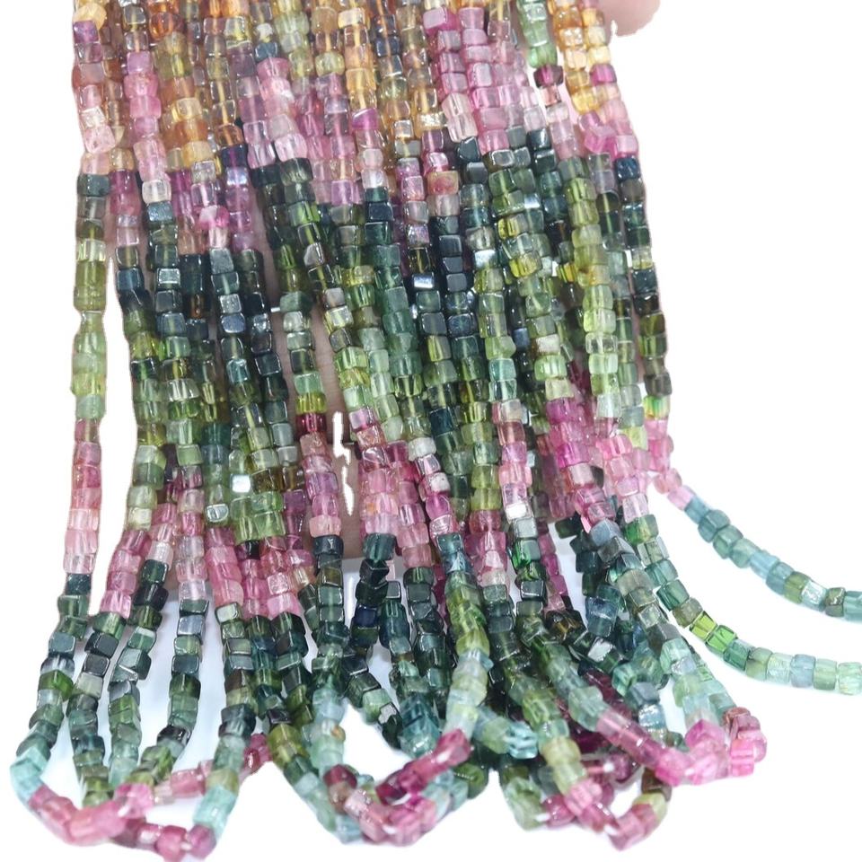 Multi Tourmaline Smooth Square Shape Beads