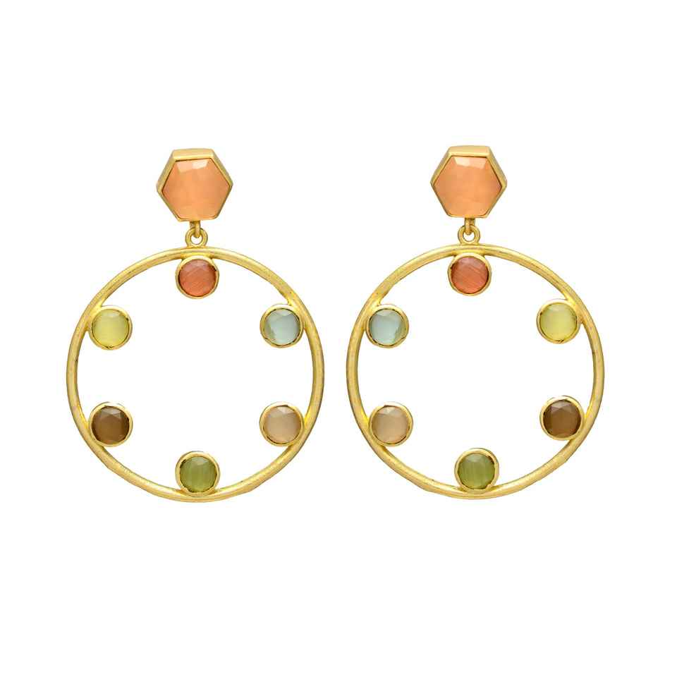 ต่างหูวงกลมพลอยหลากสีมาใหม่สีทอง
