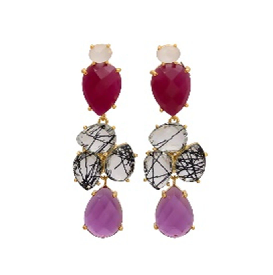มาใหม่หลายพลอย925สเตอร์ลิงลูกแพร์รูปร่างต่างหูเงิน