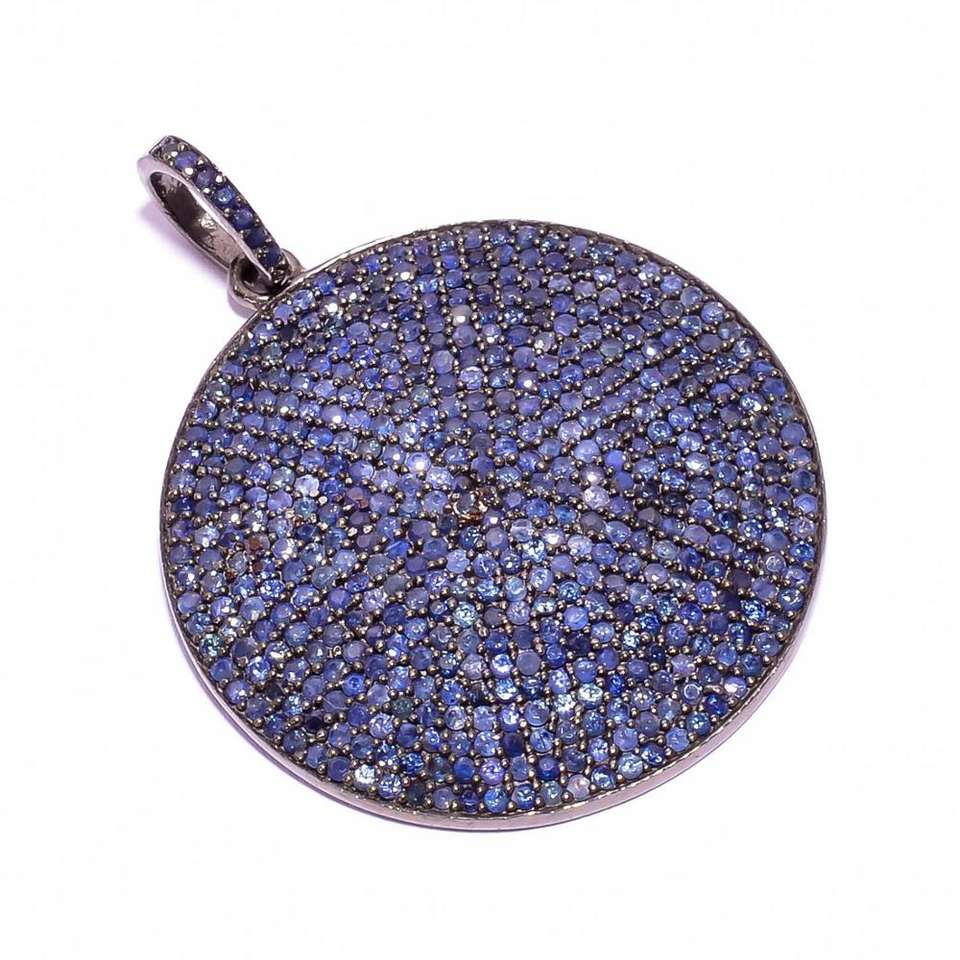 จี้แซฟไฟร์สีน้ำเงินทรงกลมสุดหรูสำหรับผู้หญิง | จี้ห้อยคอประดับทองคำเปลว ดีไซน์โดดเด่น เหมาะสำหรับงานปาร์ตี้และงานเฉลิมฉลอง