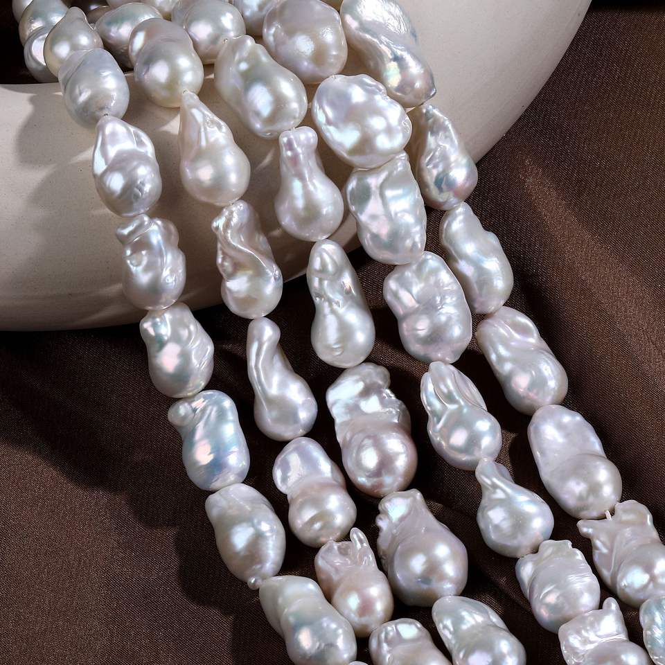 ลูกปัดหางปลาธรรมชาติสีขาวชมพูทรงบาร็อคแบบไม่สม่ำเสมอสำหรับงาน DIY เครื่องประดับทำมือ ขายส่งอุปกรณ์เสริม