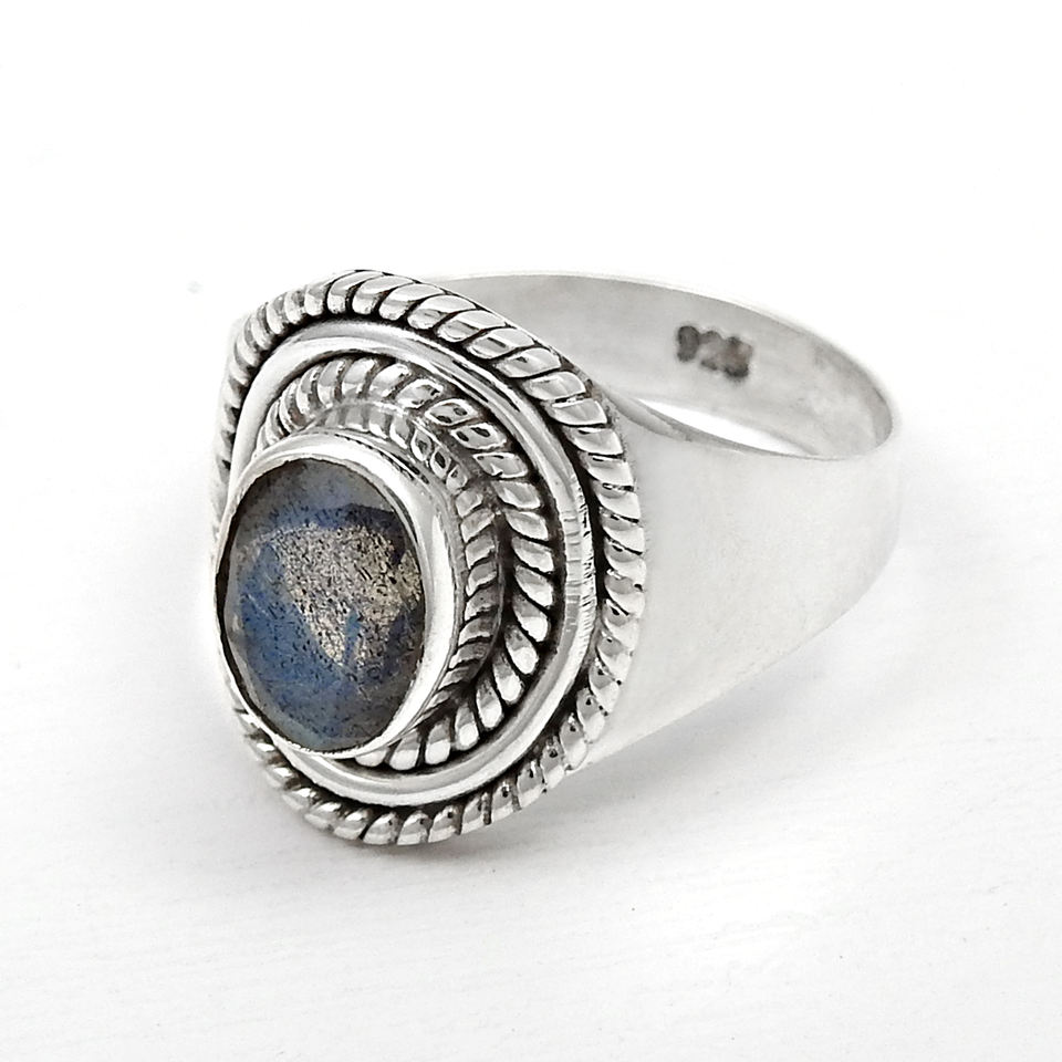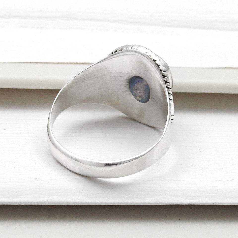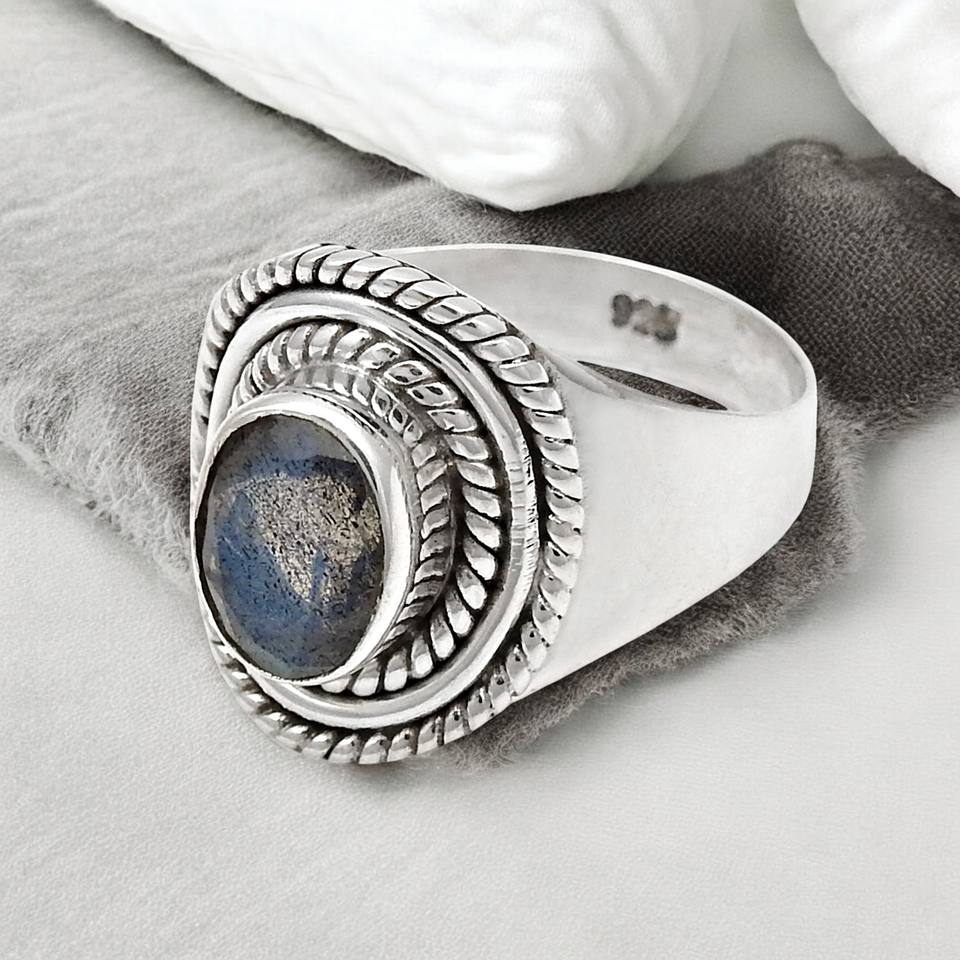 แหวนรูปไข่อัญมณีลาบราดอไรต์ธรรมชาติมาใหม่ออกแบบหรูหราทำ From925เครื่องประดับเงินแท้ทำมือสไตล์โบโฮ