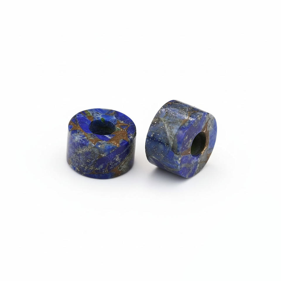ลูกปัดหินลาพิสลาซูลีธรรมชาติ ทรงรอนเดล ทำจากทองแดง