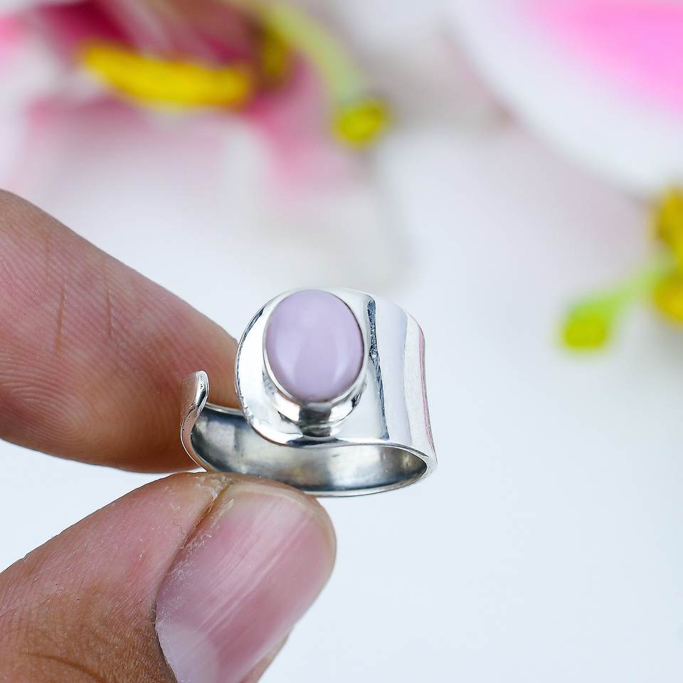 มาใหม่แหวนเครื่องประดับอัญมณีโอปอลสีชมพูธรรมชาติแหวนแฟชั่นขายดี925สเตอร์ลิงชุบเงินแฮนด์เมด