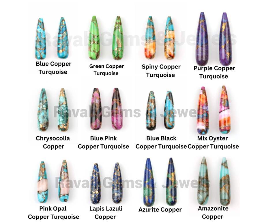เทอร์ควอยซ์ทองแดงสีน้ำเงินธรรมชาติ ทรง Briolette ขนาด 9x30 มม.