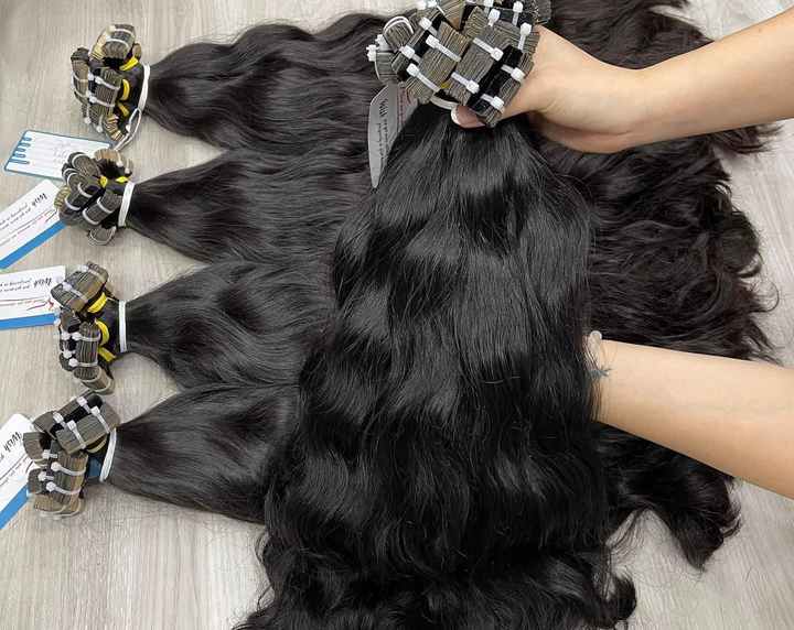 ผมต่อแบบเทป เนื้อผมธรรมชาติแบบลอนธรรมชาติ สีดำธรรมชาติ ผมแท้เวียดนาม 100% ผิวสัมผัสเรียบลื่น ไม่พันกัน