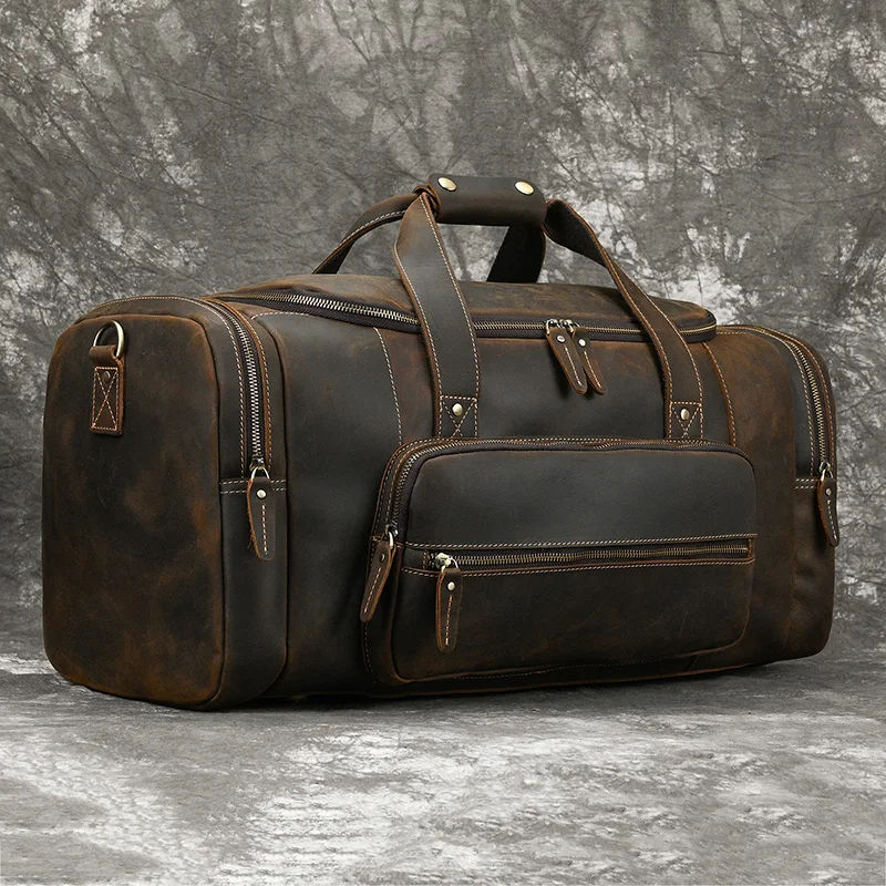 กระเป๋าเดินทางหนังวัวสไตล์วินเทจขนาดใหญ่กระเป๋าเดินทางหนังบ้าหนังแท้