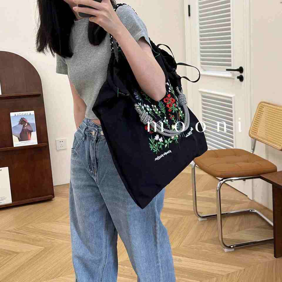 กระเป๋าผ้าไนล่อนปักลายดอกไม้หญ้ากระเป๋าช้อปปิ้งกระเป๋าถือผู้หญิงกระเป๋าสะพายไหล่แฟชั่น