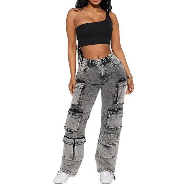 กางเกงยีนส์เดนิมทรงคาร์โก้ผ้าฝ้ายไซส์ใหญ่ทรงปกติสไตล์วินเทจสำหรับฤดูร้อน ระบายอากาศได้ดี เป็นมิตรกับสิ่งแวดล้อม รับผลิตตามแบบ OEM สินค้ามาใหม่สำหรับผู้หญิง