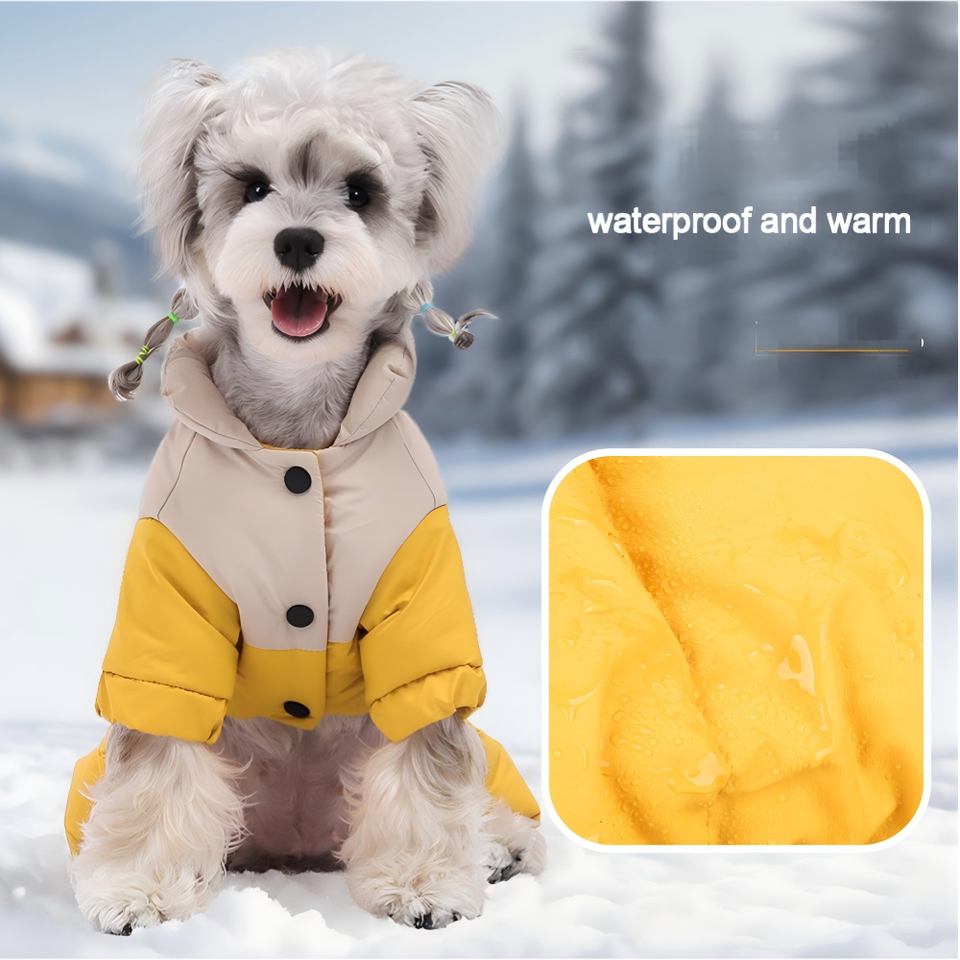 เสื้อผ้าสุนัขกันน้ำพิมพ์ลายโพลีเอสเตอร์สำหรับฤดูหนาวแบบใหม่ OEM ผลิตตามสั่ง พร้อมปกปิดขา ดีไซน์หรูหรา ขายส่ง