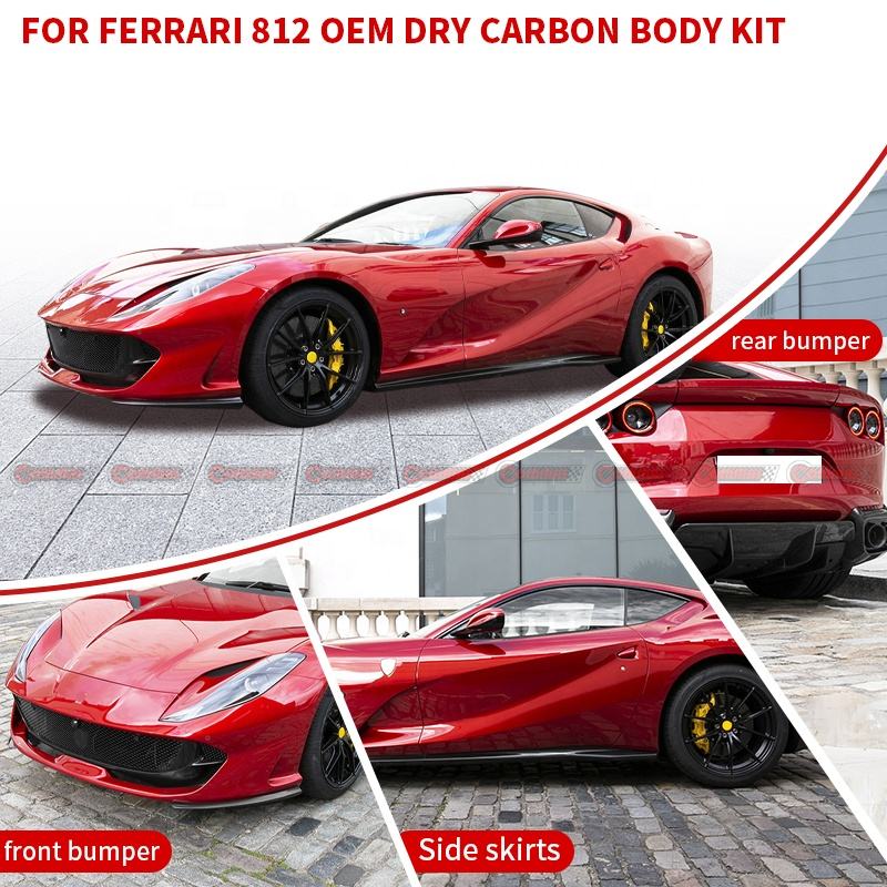 ชุดแต่งตัวถังรถยนต์คาร์บอนไฟเบอร์แบบแห้งสไตล์ OEM รุ่นใหม่ สำหรับ Ferrari 812 GTS ช่องระบายอากาศด้านหน้า สเกิร์ตข้าง สปอยเลอร์หลัง