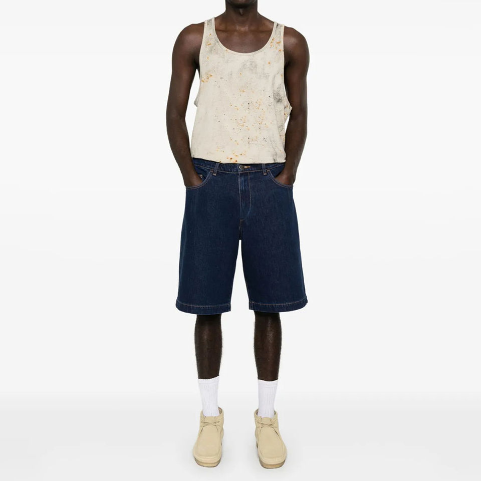 กางเกงยีนส์ขาสั้นผู้ชายเอวกลางปักลายสไตล์สตรีทแวร์ลำลองคุณภาพสูงผ้าฝ้าย 100% เป็นมิตรกับสิ่งแวดล้อมรุ่นใหม่ล่าสุด