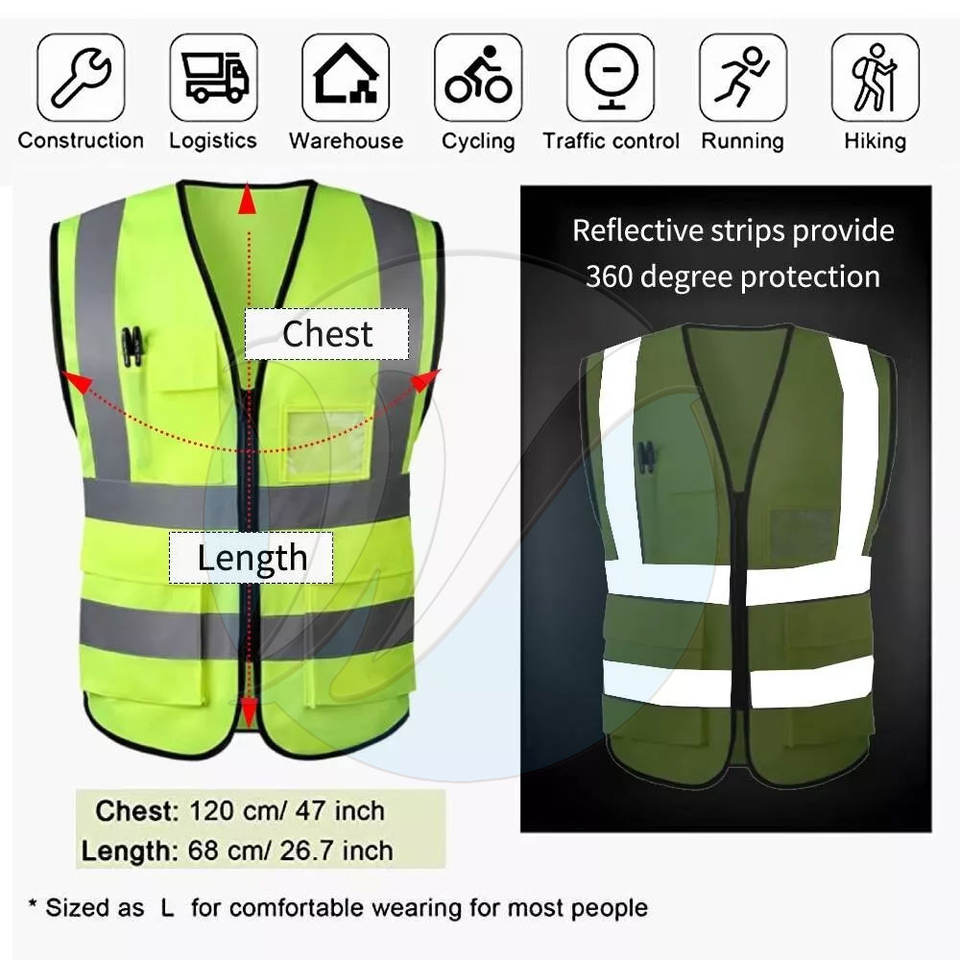 เสื้อกั๊กนิรภัยรุ่นใหม่มาแรง ลดราคาพิเศษ ดีไซน์ล่าสุด มาตรฐาน ANSI Class 1 กันน้ำ รับสกรีนโลโก้ วัสดุทนทาน ไฟ LED