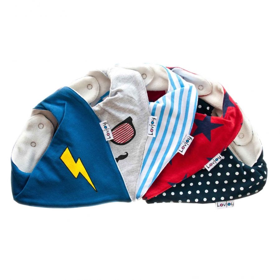 ผ้ากันเปื้อนเด็กอ่อนแบบผ้าพันคอ ผลิตจากผ้าฝ้ายออร์แกนิค พิมพ์ลายสีสันสดใส เป็นมิตรต่อสิ่งแวดล้อม นุ่มสบายเป็นพิเศษ ปรับได้ด้วยกระดุมแป๊ก
